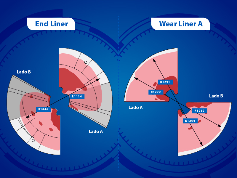 En general, todas las piezas logran resguardar el máximo desgaste permitido hacia el alabe de 1.000 mm en el radio crítico y pese a operar un 24% más de horas efectivas, el radio crítico con el que salieron las piezas fue un 5% mayor en la puntera que sufrió el mayor desgaste, quedando con un radio remanente crítico de 1.046 mm.