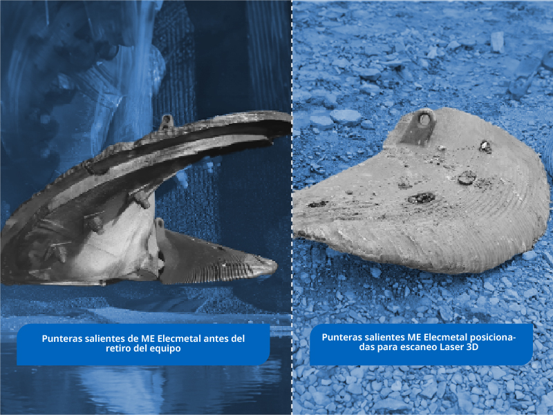 - Las tasas de desgaste respecto a la condición nominal se redujeron un 46% y 30% para las punteras ME Elecmetal A y B, respectivamente.