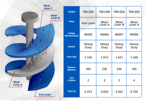 - La puntera Heavy Duty del lado A, logra cautelar al 100% el alabe del molino, pues le quedaban 114 mm todavía para llegar al radio crítico recomendado de cambio.