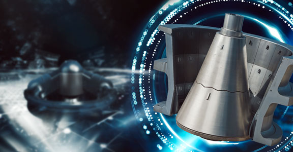 1.Diseño personalizado de mantos con perfil cónico. El primer cambio clave fue el rediseño de los mantos inferiores del chancador, incorporando un perfil cónico optimizado, cuya geometría permitiera: