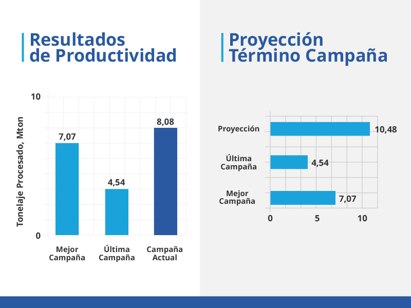 Los resultados muestran que la última campaña el equipo alcanzó una producción de 11,08 millones de toneladas, en comparación con los 4,54 millones de toneladas obtenidos en la campaña anterior con suministro OEM.