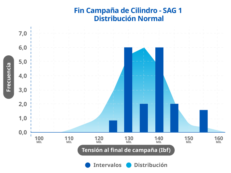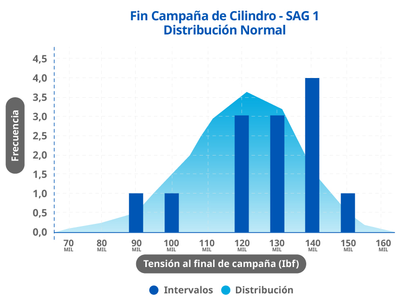 • A lo largo de la campaña febrero 2023 en el molino SAG 1 en el cilindro con los pernos Valley Forge la tasa de pérdida de tensión es menor que los otros proveedores, al término de la campaña la tensión promedio es 120,000 lbf sin retorqueos.