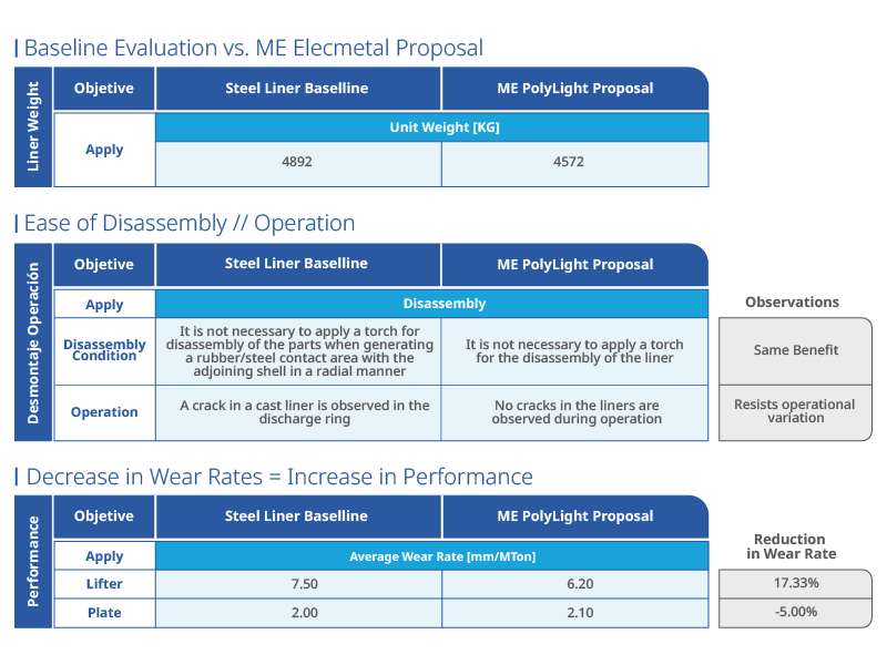 - The ME PolyLight product demonstrated that it is not necessary to alter the mill’s internal volume by using thicker liners to achieve the desired durability and reduce the likelihood of fractures.