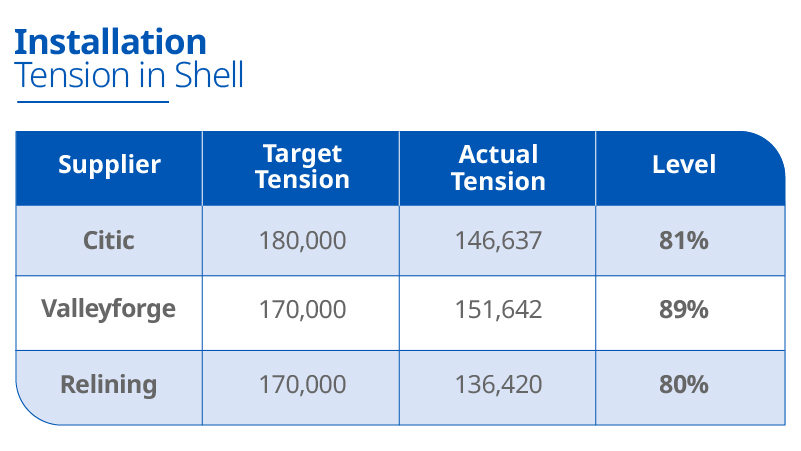 - Improving tension levels achieved during liner installation in SAG mills. Committing to suggesting a tightening and retorqueing procedure with specified tension values for each supplier